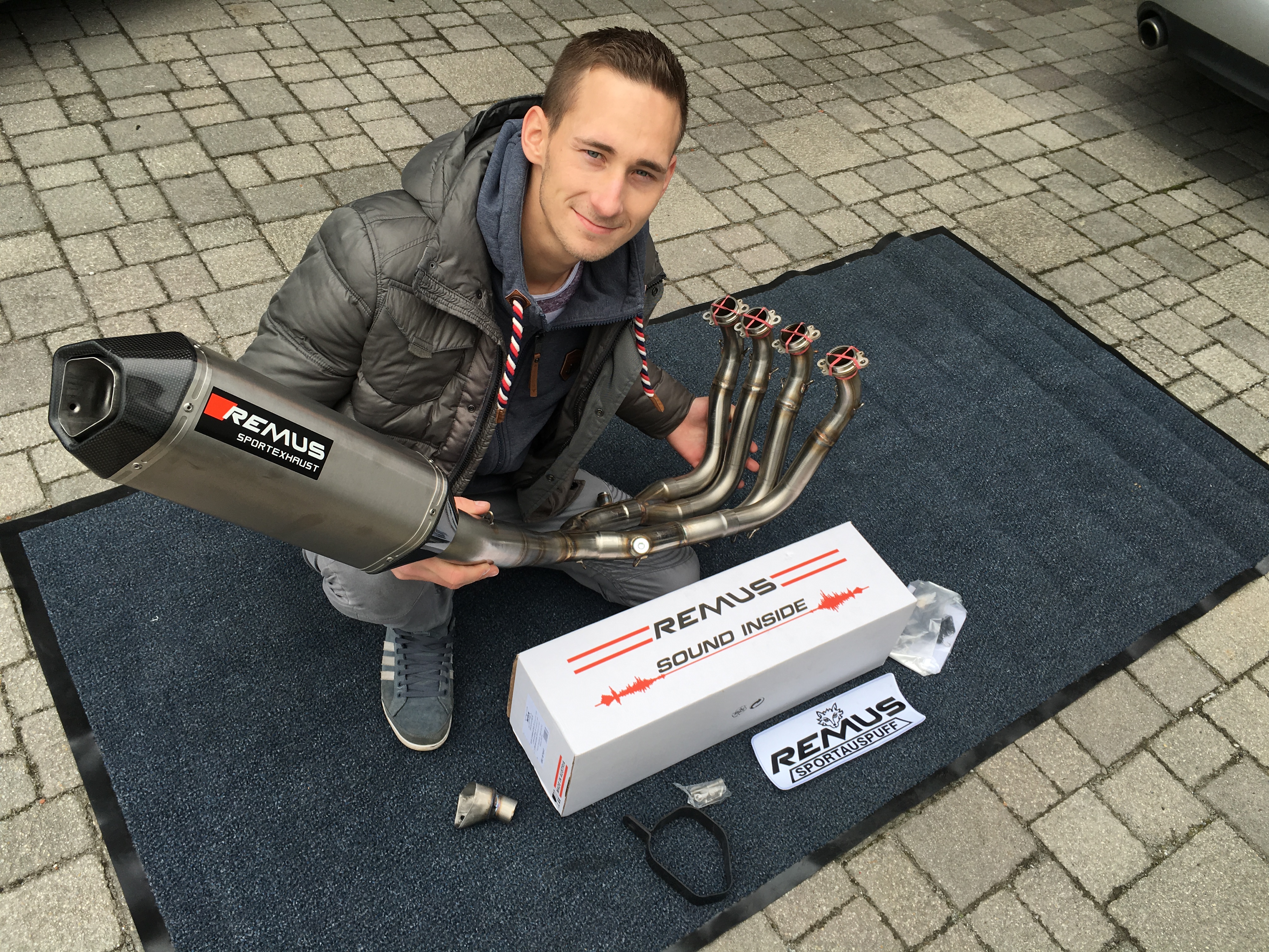Wie schon in der vergangenen Saison, darf ich stolz darauf sein auch 2016 wieder von Remus unterstüzt zu werden. Vor ein paar Tagen habe ich eine neue Remus-Racing-Komplettauspuffanlage für mein zweites Motorrad (BMW S1000RR) erhalten. Der Krümmer und das Verbindungsrohr sind aus robusten Edelstahl gefertigt, die Hülle des Schalldämpfers besteht aus extrem leichten Titan und die Endkappe des Schalldämpfers ist aus Carbon.